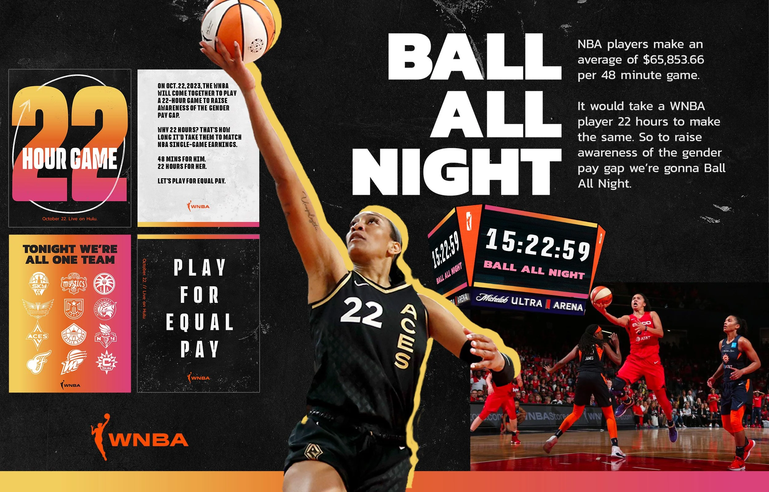 NBA players make an average of $65,853.66 per 48-minute game. It would take a WNBA player 22 hours to make the same. So to raise awareness of the gender pay gap we’re gonna Ball All Night.